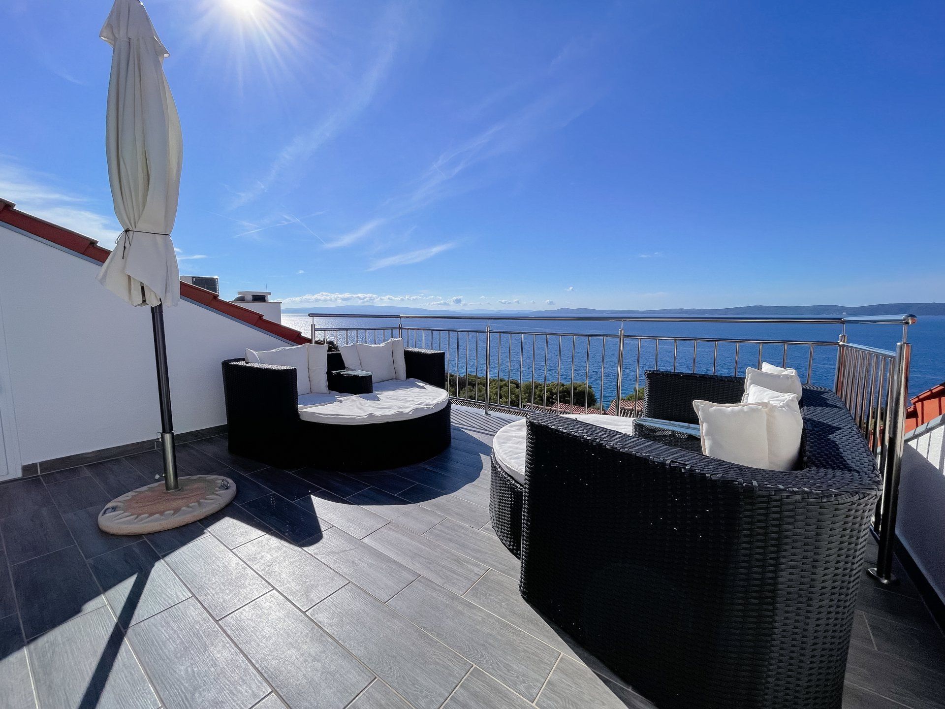 Sehr gemütlich und geschmackvoll eingerichtete Wohnungen. Es bietet sich ein wundervoller Ausblick auf die Adria und die vorgelagerten Inseln. Jede Wohnung besitzt eine vollausgestatte Küche. Man kann es sich hier richtig gut gehen lassen.
